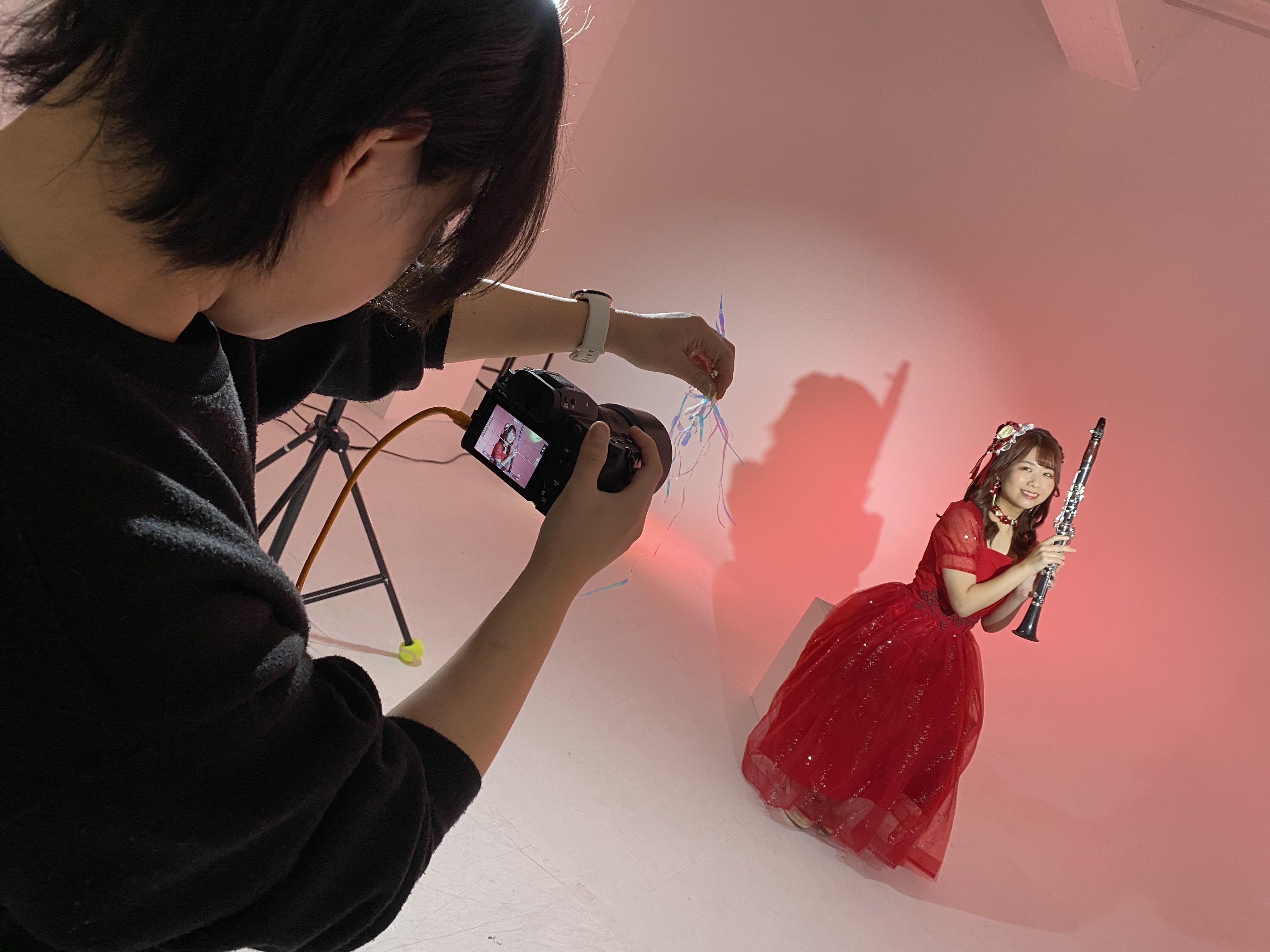 左手に持ってるのは写真をキラキラさせる為のやつ!この撮影方法カメラ片手で持つから結構大変らしいです笑