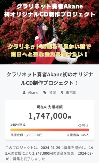 目標金額の120万を大きく超えて174万円!!みんな!本当にありがとう!!!!