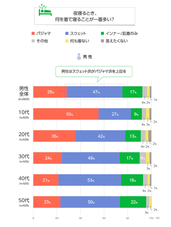 男性の睡眠時の服装アンケート(出典:LINEリサーチ)