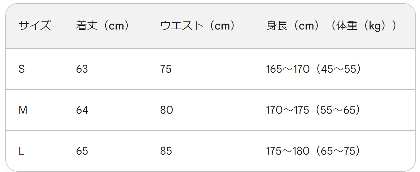ルームウェアサイズ