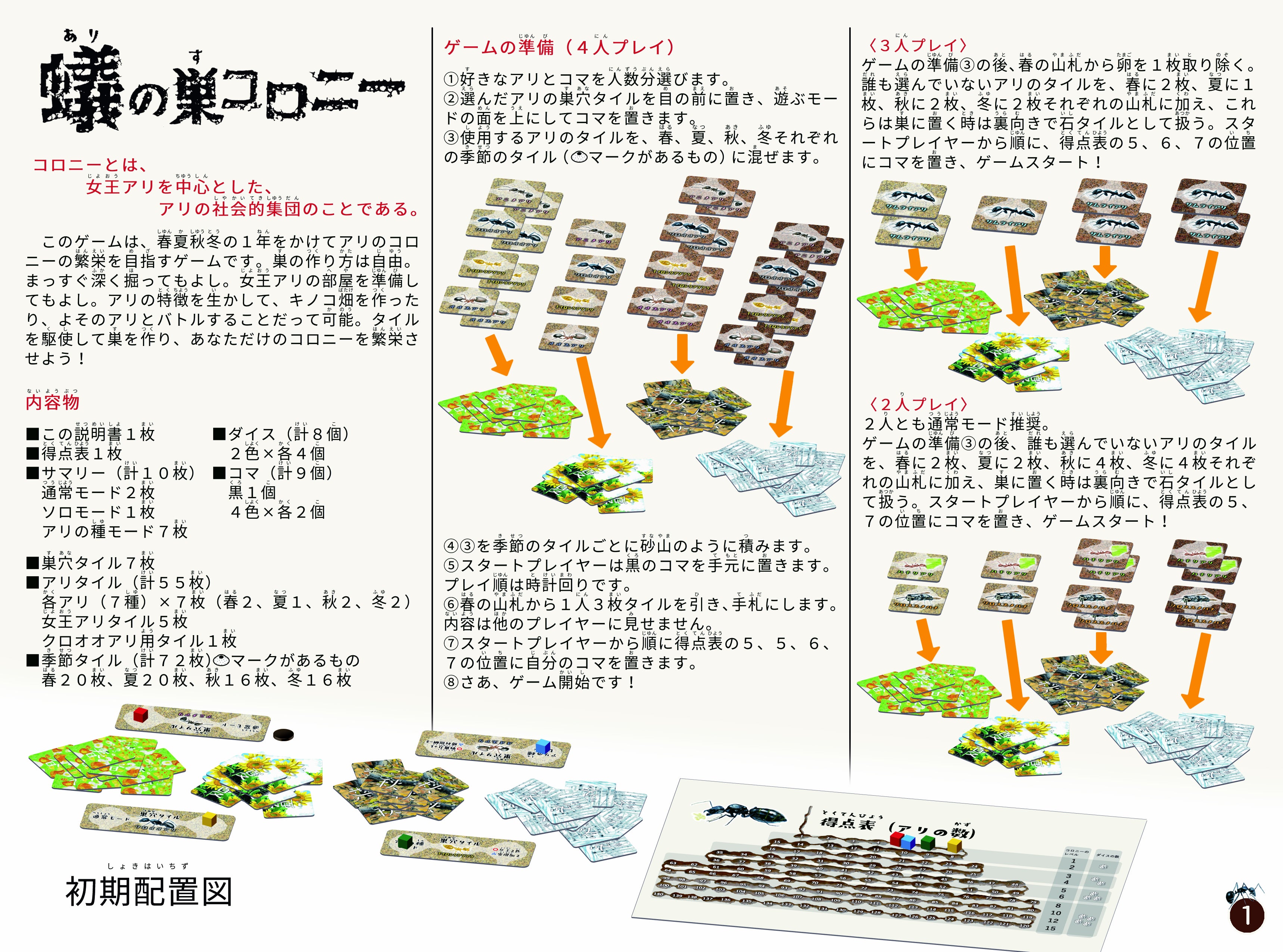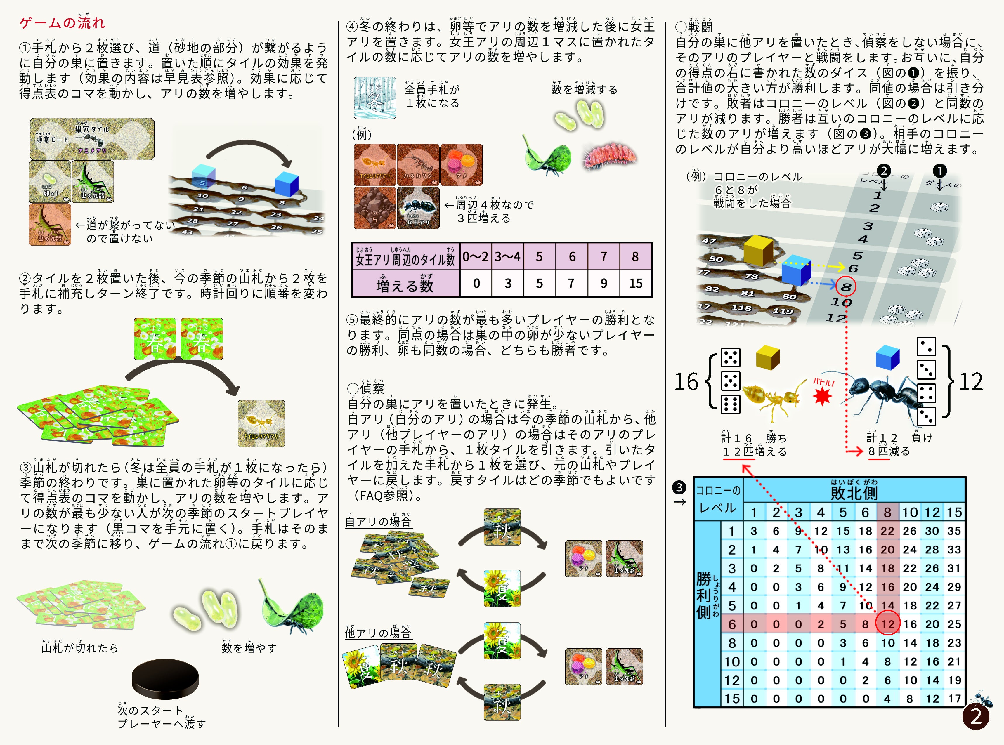 ソロモードや、アリの種類の違いを生かした個別モードも収録。子どもが分かるように漢字にはルビが振ってあります。