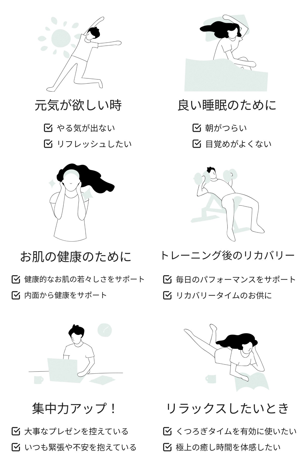 忙しい日常を送る人々の癒しの時間をサポート。カプセルタイプでこぼれないデザインだから、お出かけ時にもピッタリ。朝の目覚めを楽しくし、リラックスタイムをサポートします。スマホ漬けで寝不足に悩む方にも、ゆったりしたナイトタイムをご提供します。