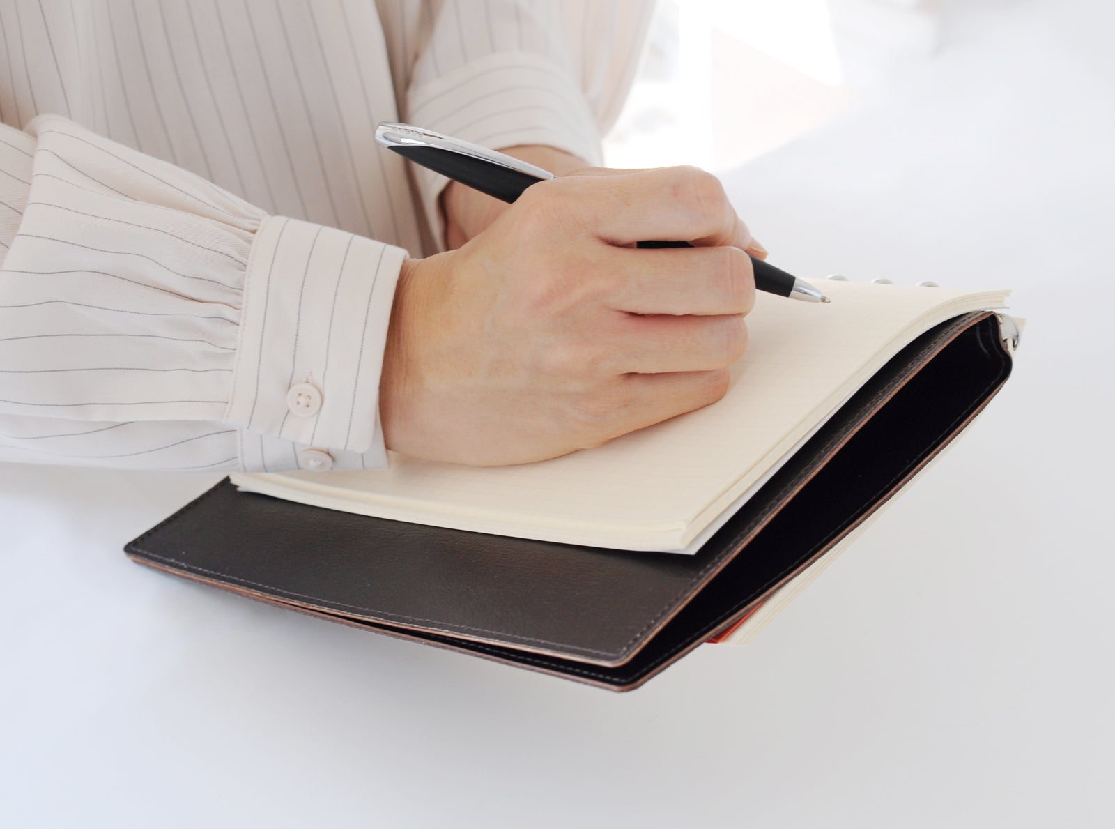 閉じベルト・ポケット等の構造をなくしたことで、書く際、段差に邪魔されず、最初から最後までスムーズな書き心地を保つことができます。