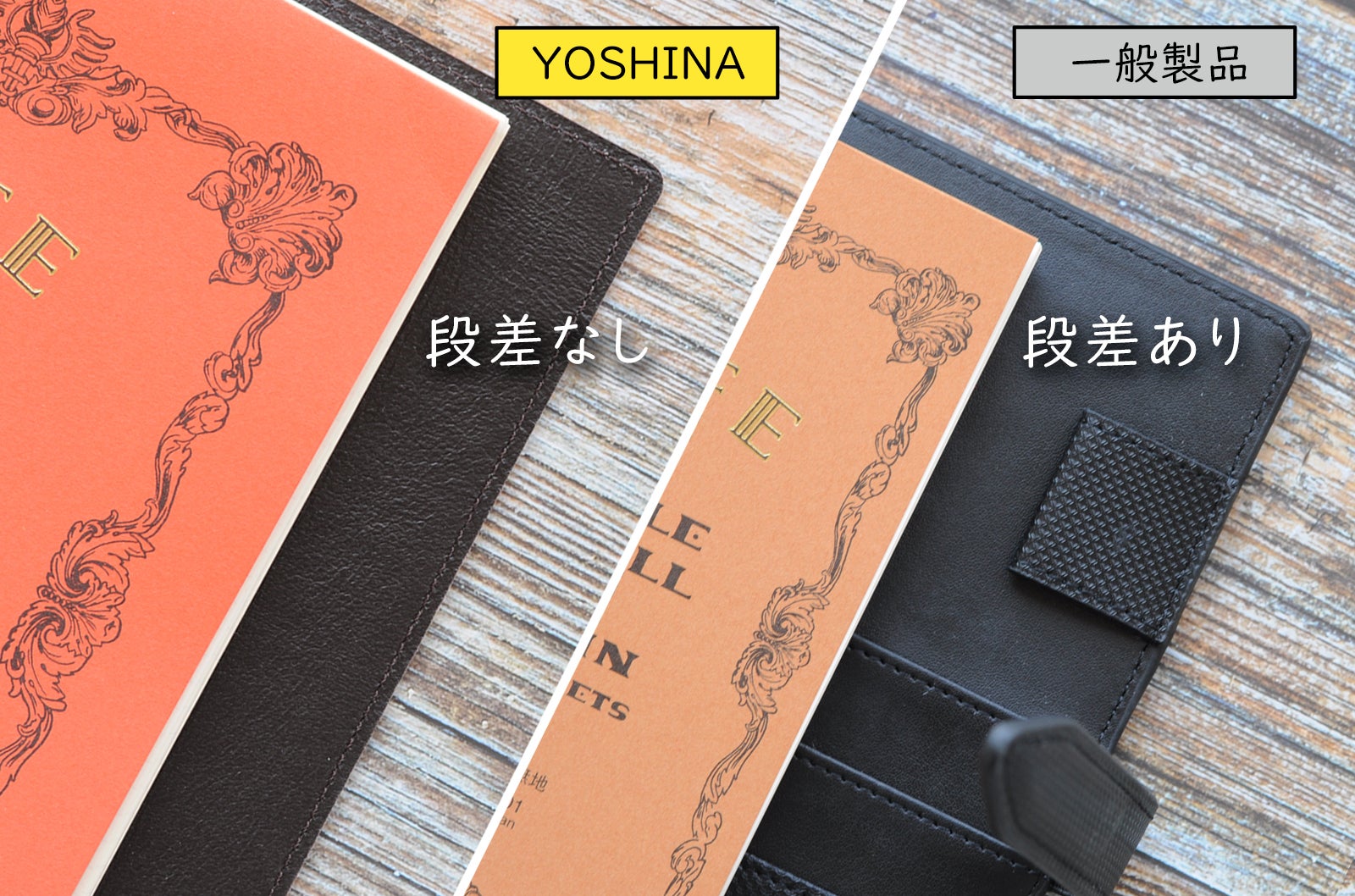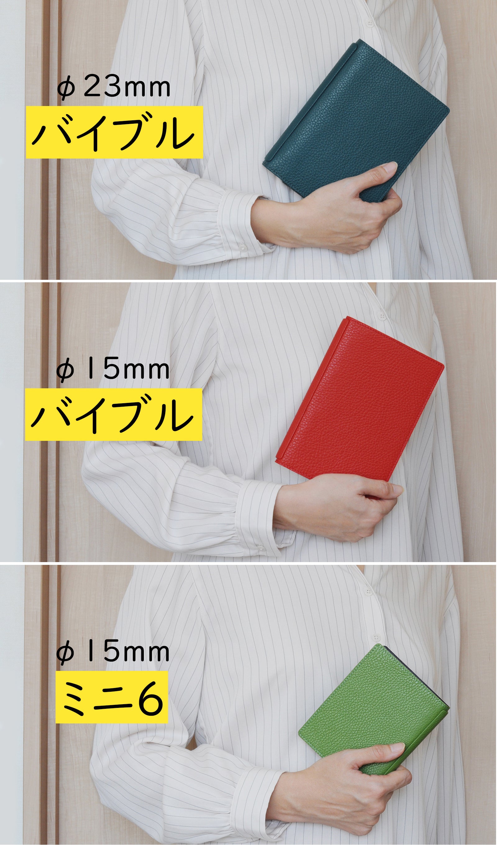 YOSHINAは使用スタイルとシーンにより、2種類の手帳サイズとリング径違いの製品をご用意しました。