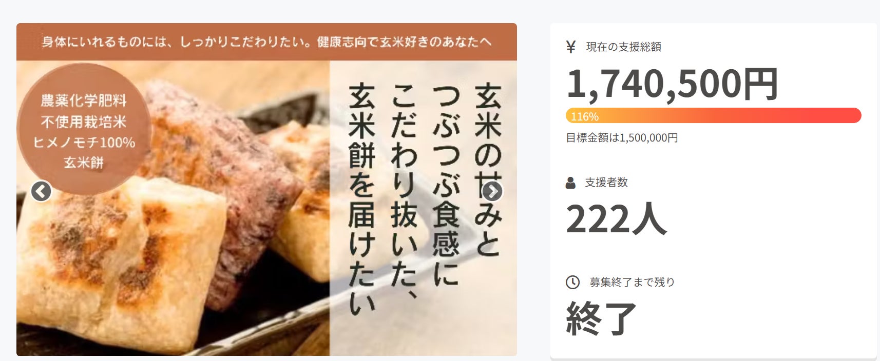 このプロジェクトは、2023/12/15に募集を開始し、 222人の支援により 1,740,500円の資金を集め、 2024/01/19に募集を終了しました