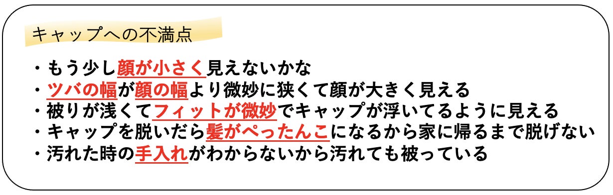 でも、キャップに対する不満はあると思います!