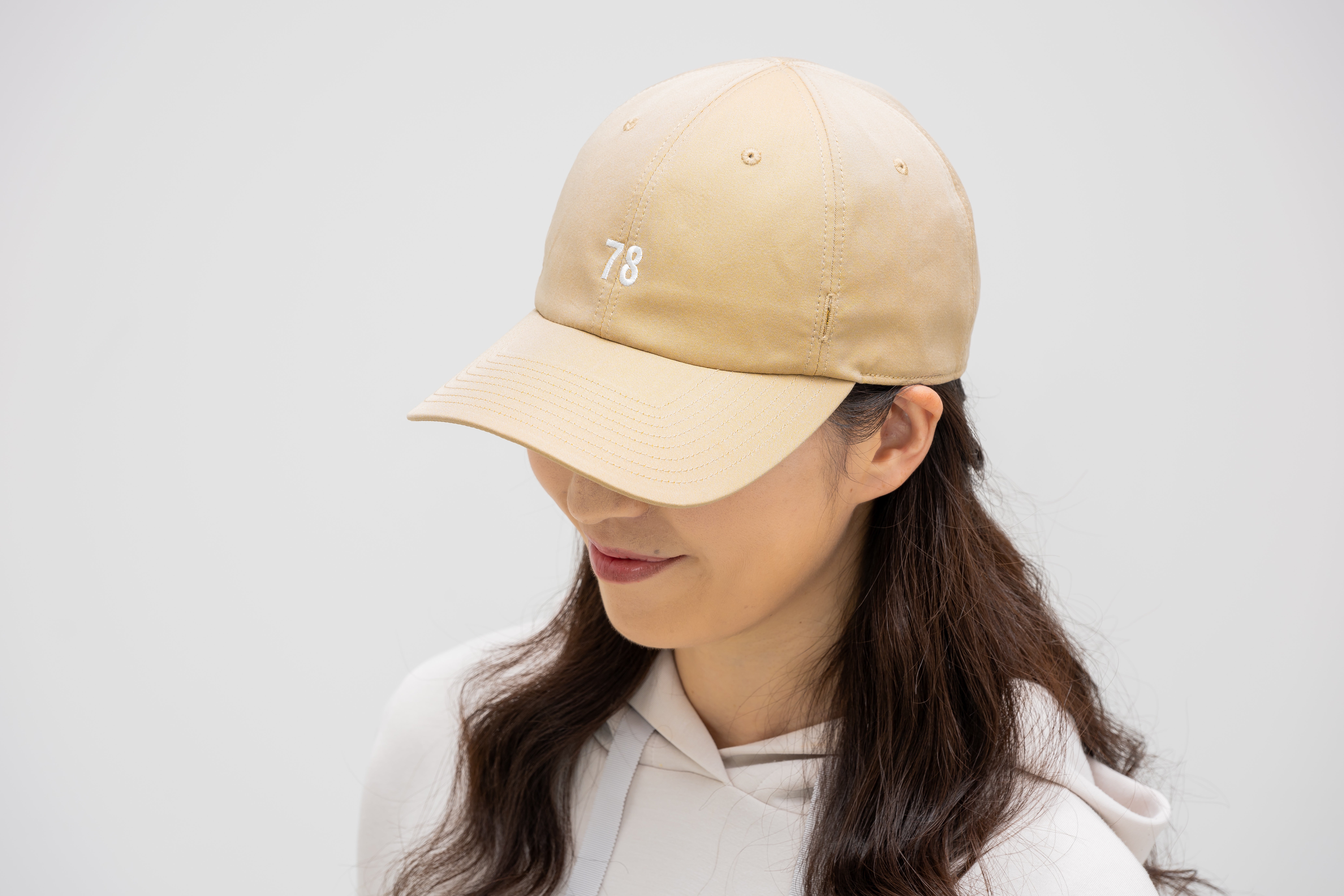 帽子工場さんの女性企画者様のお力を借り、アンケート結果(女性のキャップに対する要望)をもとに「小顔でスマートな印象になるよう型紙から考案、試作を繰り返し奇をてらわないデザインと、被り心地の良さ、扱いやすさを追及したキャップ」を開発しました。