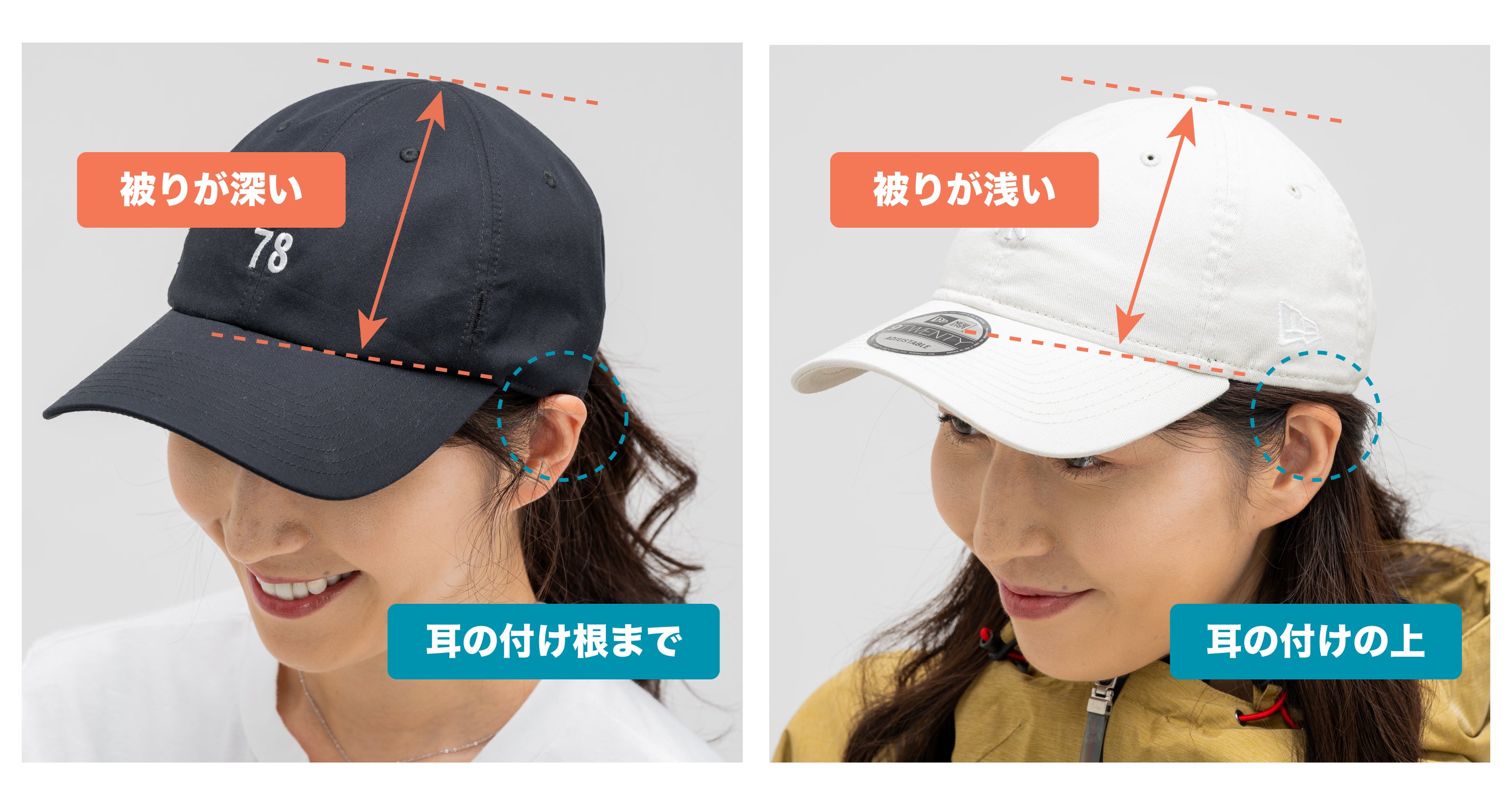 同角度から撮影しています。【小顔効果】を徹底追求したキャップは小顔に見えませんか?