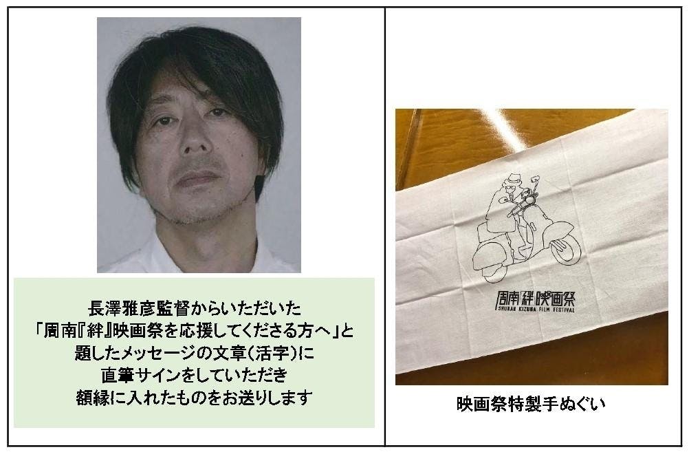 ⑦長澤雅彦監督・周南「絆」映画祭応援メッセージカード+映画祭特製手ぬぐいコース【5名様限定】10,000円