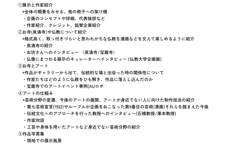 お寺とアートの関係を軸に今回の展示を紐解く、全5冊から構成される図録冊子です。