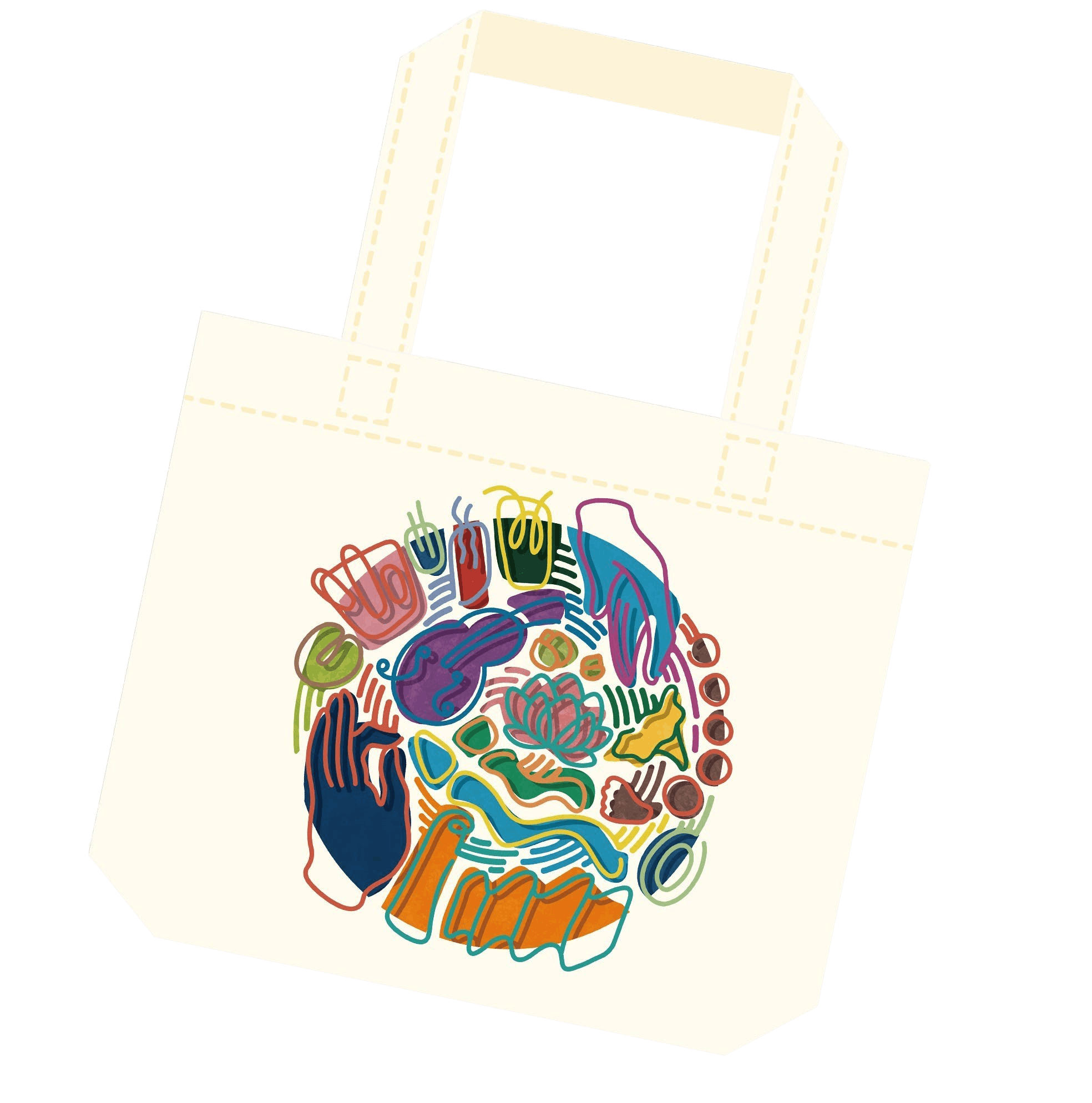 上記の図録冊子、ステッカー3種、ミニ手鏡、トートバッグの全種類詰め合わせプラン