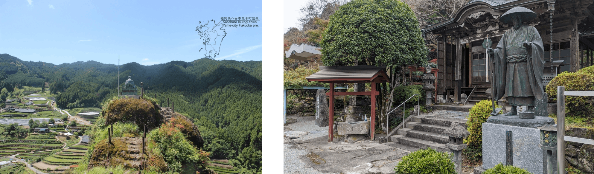 (左:笠原地区の風景 右:茶祖 周瑞和尚と霊巌寺)