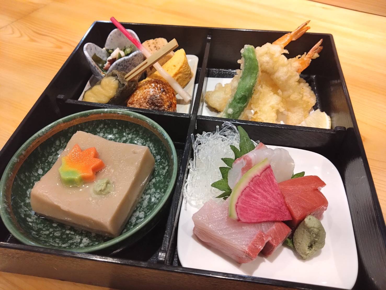 お昼は当面、松花堂弁当の提供をさせていただく予定です。