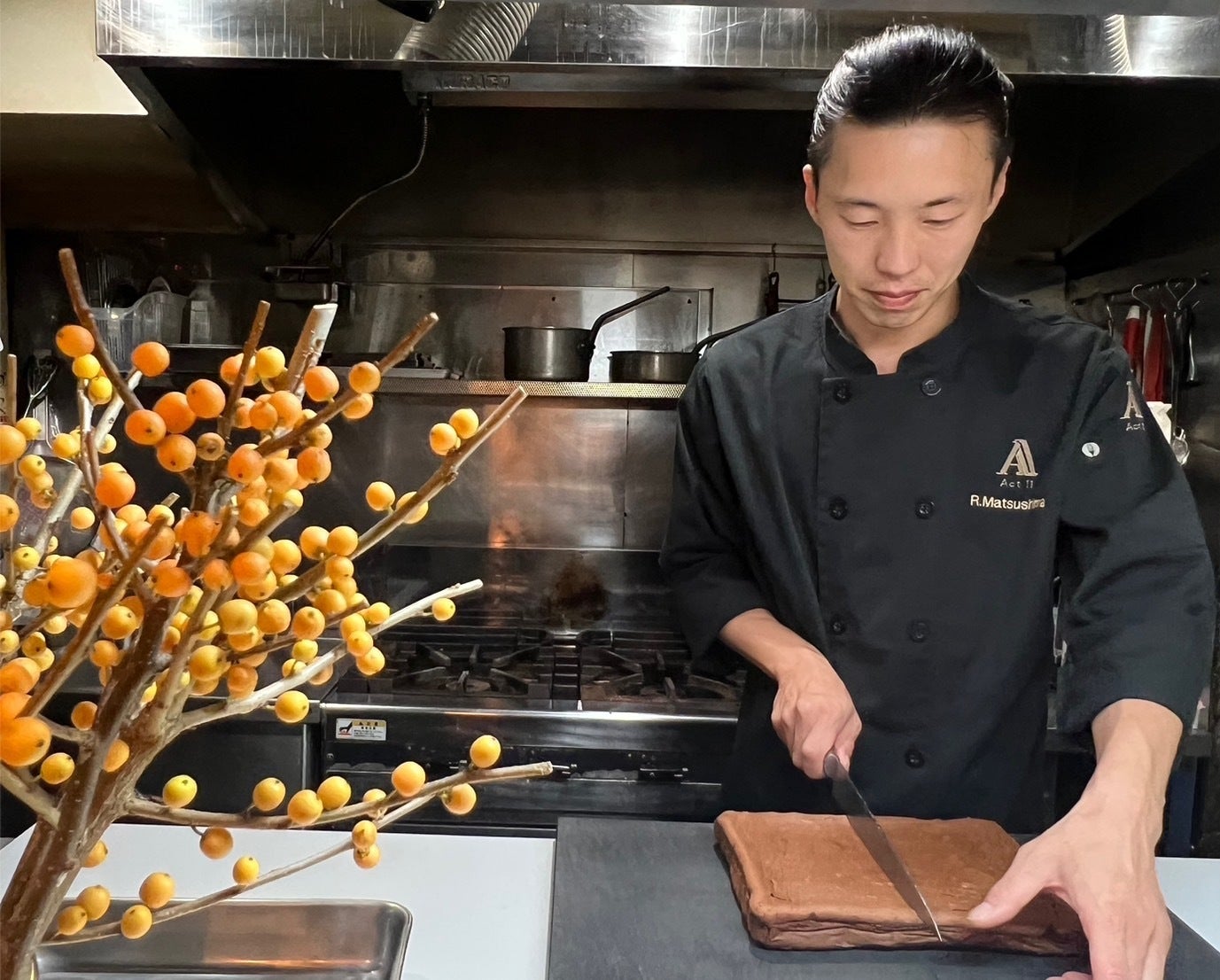 製菓の専門学校を卒業後、都内のイタリアンレストランにて料理人のキャリアをスタート。六本木のステーキハウスでは、スーシェフを務め、退職後、銀座の創作肉料理店なども経験し、外国産牛肉から和牛まで幅広い牛肉の扱いを習得。今年の7月に紹介制のイノベーティブフュージョンレストラン[Act.11]のオープンに伴いシェフに就任。日本の様々な食材を使用し、"食べて健康に"をテーマにお客様をもてなしている。