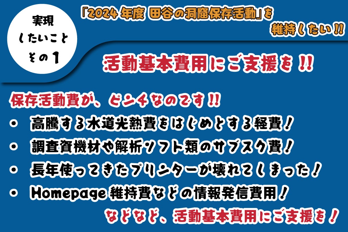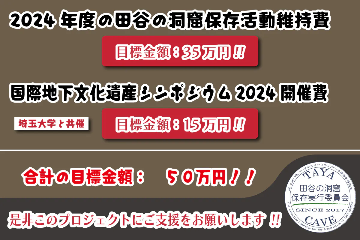 田谷の洞窟保存活動を維持するための緊急クラウドファンディングにご支援をお待ちしております!