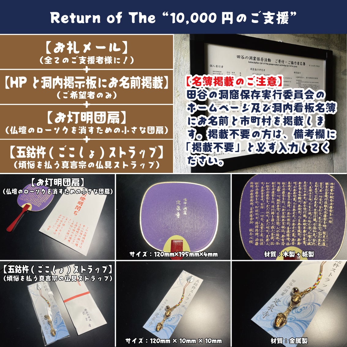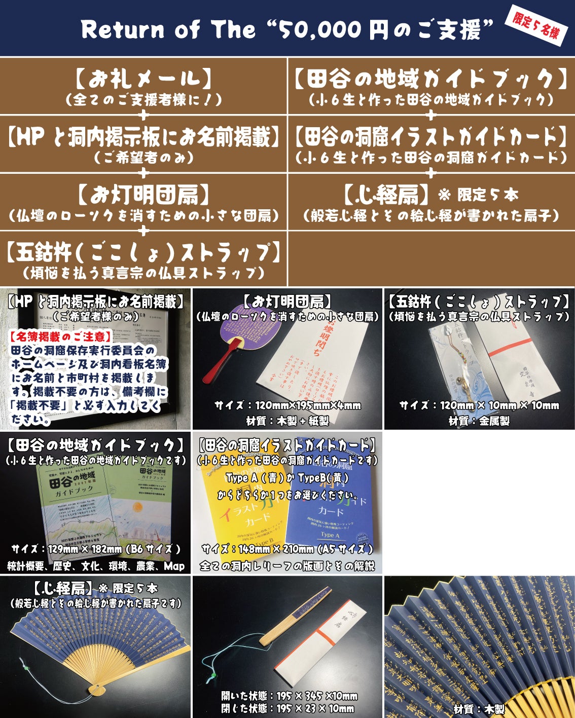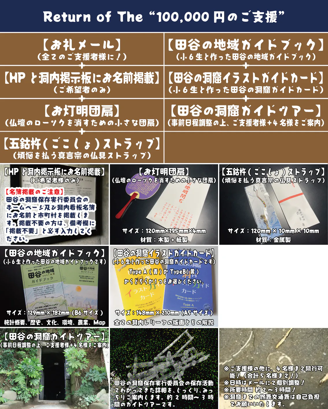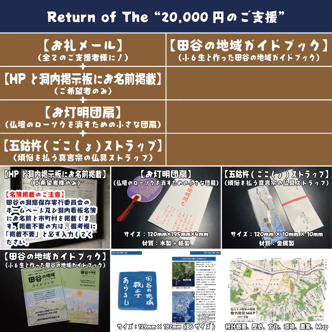 ご支援いただける方々には、以下のリターンを準備しています。