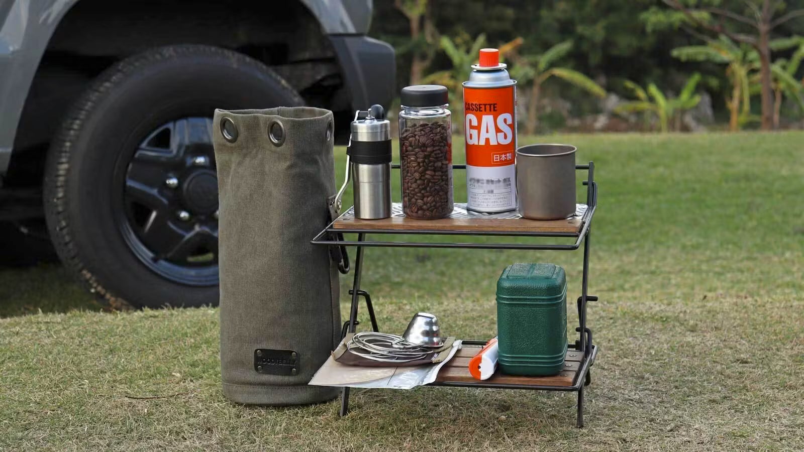 細かなキャンプギアの収納やコーヒーセット入れなども収納できます。