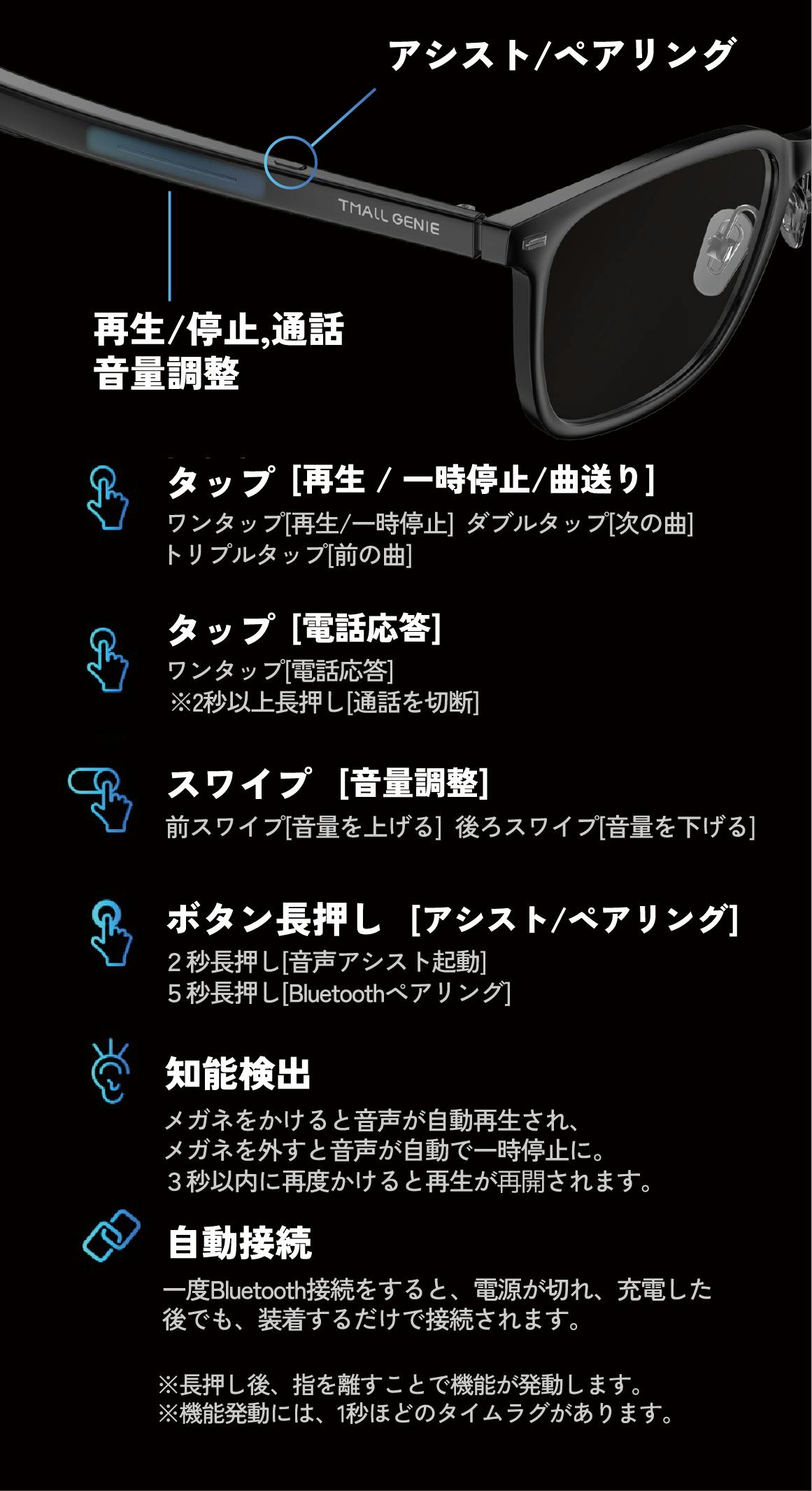 【操作はタップ&スワイプメガネの着脱だけでON、OFF切り替え】