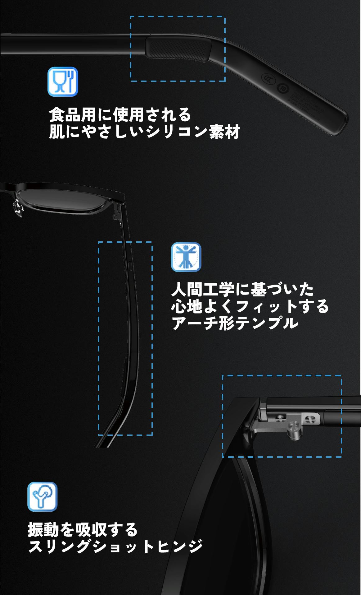 骨伝導メガネでは初となる、最新のBluetoothを搭載。消費電力が低く、干渉防止が強化されているので、接続がより安定します。