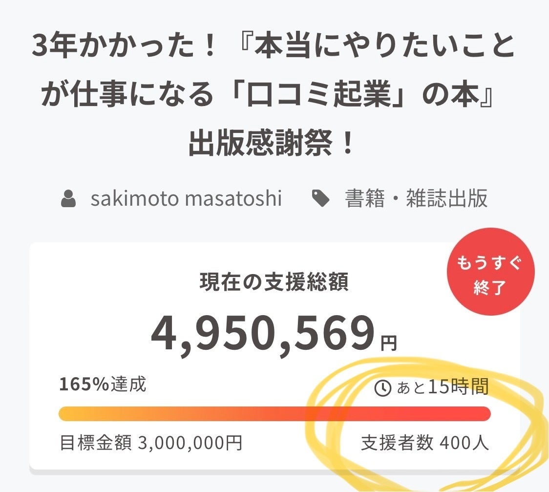 さきほど支援者400人を突破!!!