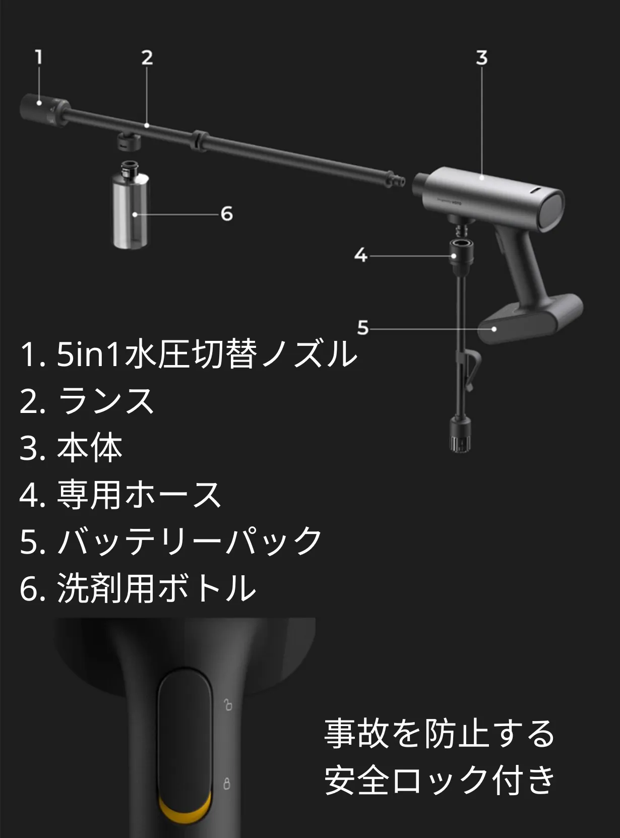 HOTO Washer Proは本体とバッテリーパック、ランス、ホースを接続するだけで簡単組み立て!