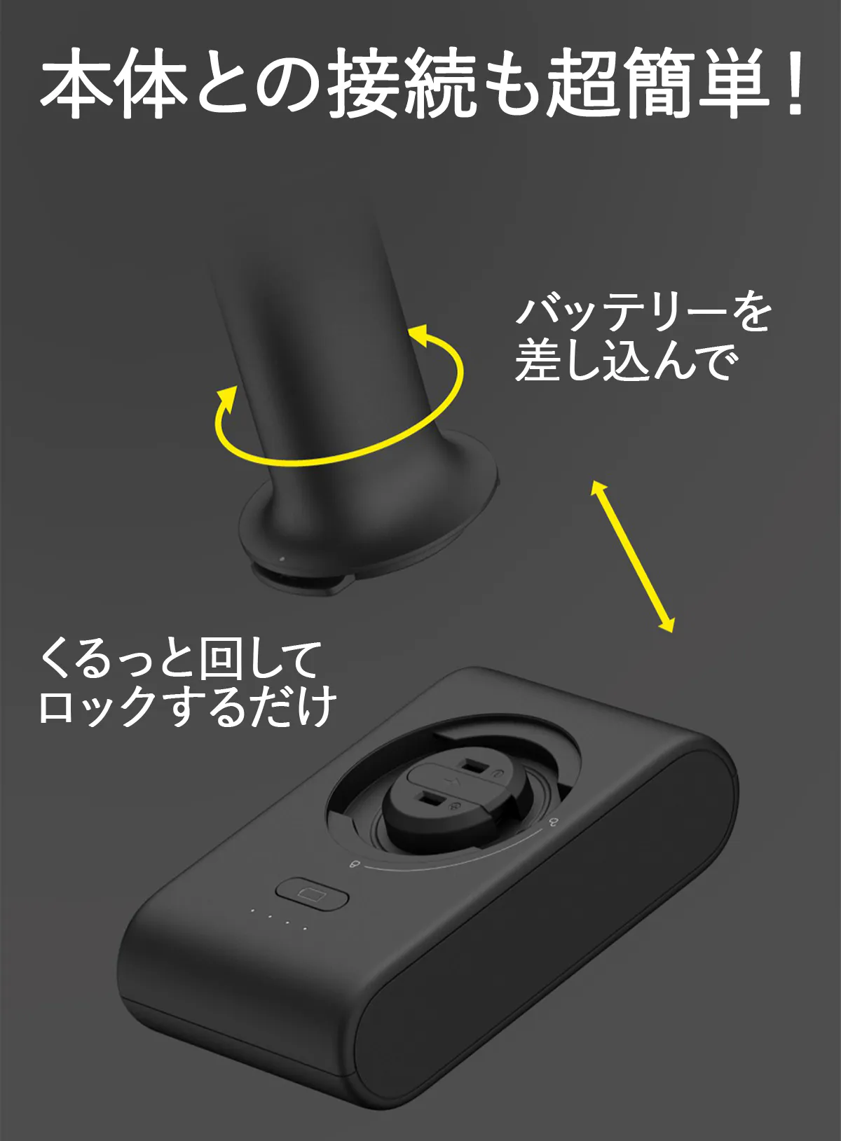 1. 本体にバッテリーパックを取り付けます。