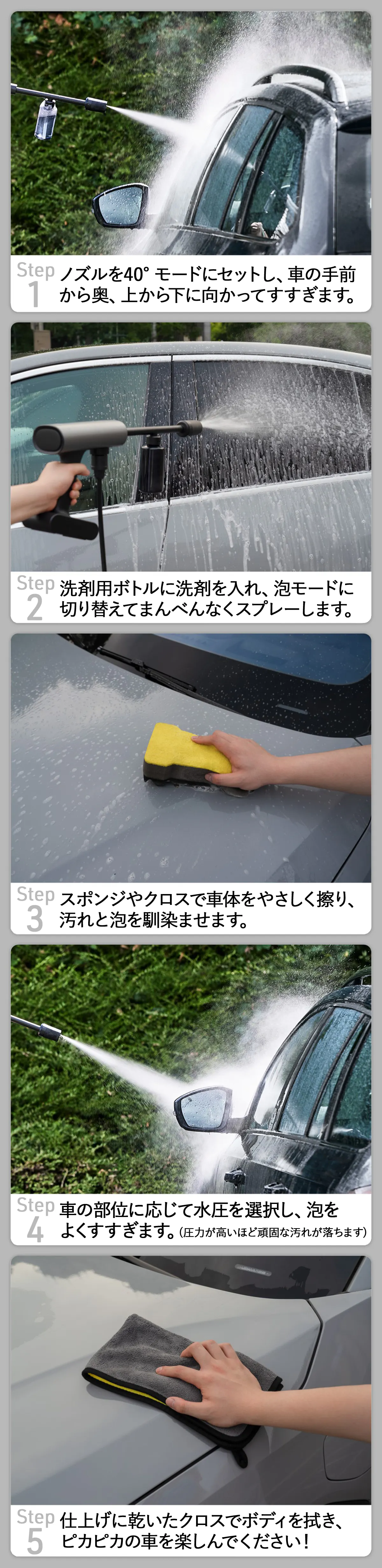 愛車やおうちをいつでも簡単にサクッとキレイに出来て、清潔感も心も満たされる、そんな生活を是非HOTO Washer Proで実現してください!