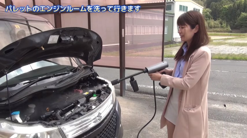 動画タイトル: (コンセント不要・高圧洗浄機)黄砂で汚れたスズキパレットを車素人女子に洗車させてみた!