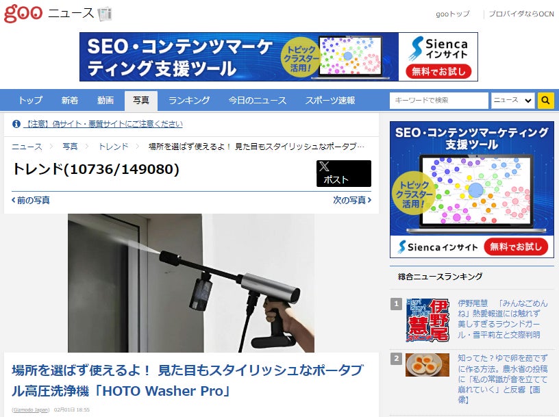 今回は、gooニュースで【HOTO Washer Pro】を紹介して頂きました!