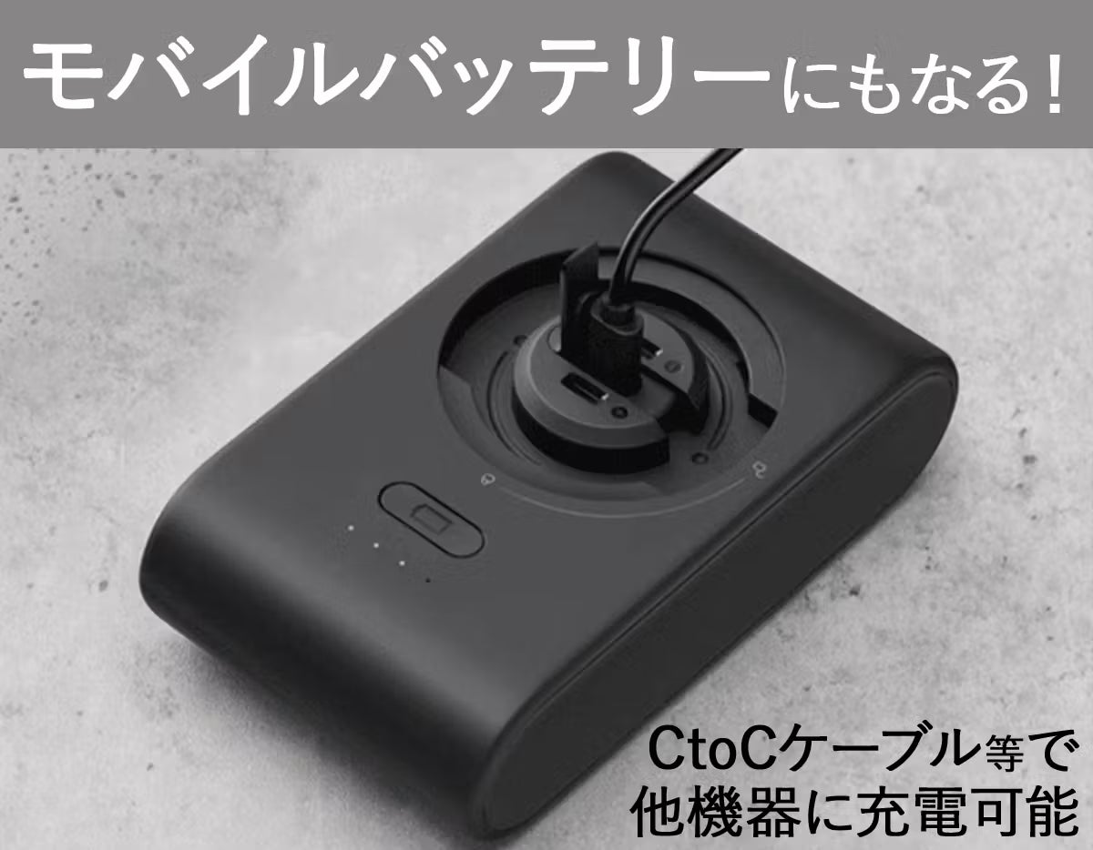 特筆すべきは、専用充電器ではないため、普段使いの充電ケーブルを利用してバッテリーを充電できる点です。これにより、「充電器をどこに置いたか忘れた…」といった心配が不要になり、日常のストレスを軽減します。