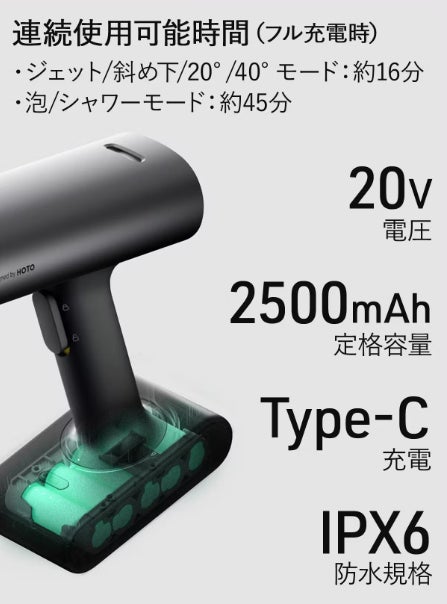 今回は、HOTO Washer Proという便利なデバイスについてご紹介します。この製品は、連続使用可能時間がフル充電時で約2500mAhという優れた性能を誇ります。さまざまなモードで使えるので、日常のさまざまな場面で大活躍すること間違いなしです。