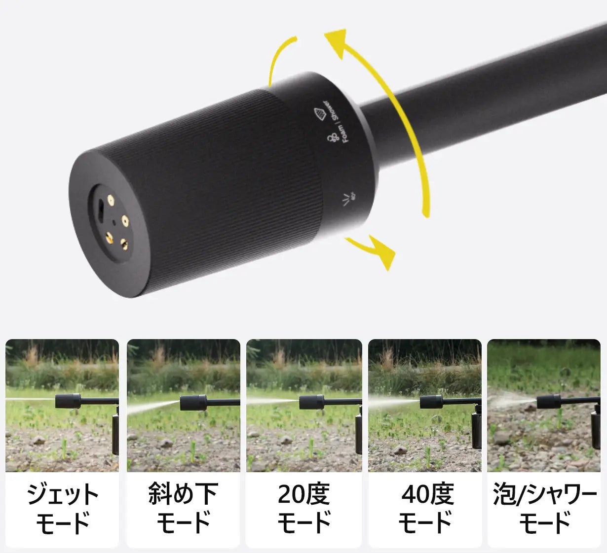 「少し水圧が強いな」「もう少し弱くしたいな」という時に先端を回すだけ、ノズル交換不要な点もWasher Proの魅力です!