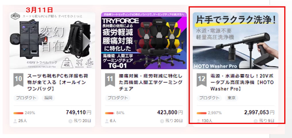 また本日 (3月11日) のCAMPFIREランキングプロダクト部門で12位に入賞することが出来ました♪