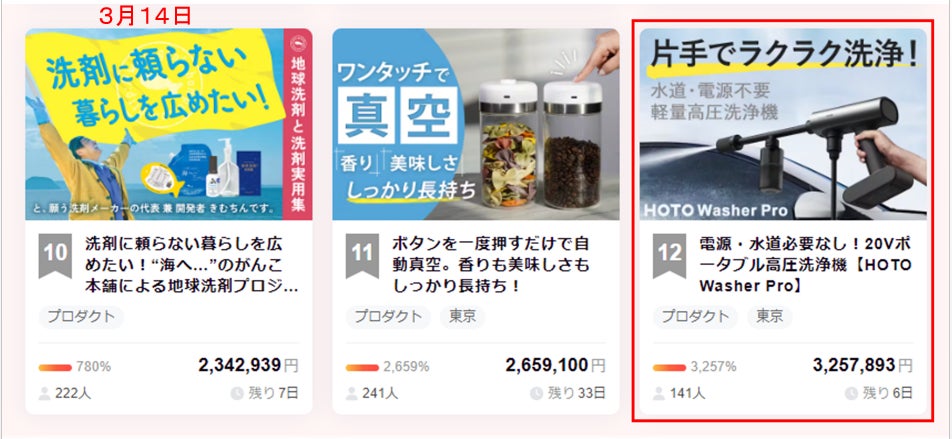 また本日 (3月14日) のCAMPFIREランキングプロダクト部門で12位に入賞することが出来ました♪