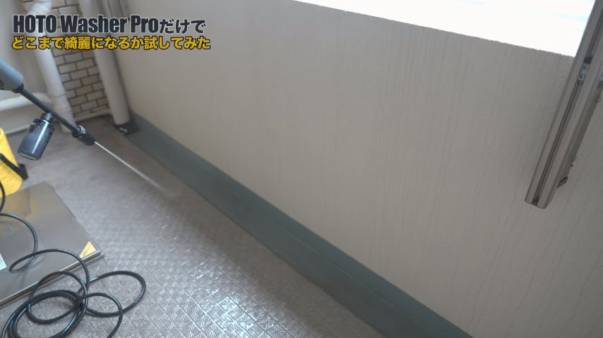 YamatoStyle様の動画にはベランダの壁の黒いシミがみるみる洗い流されていく様子が収められています。
