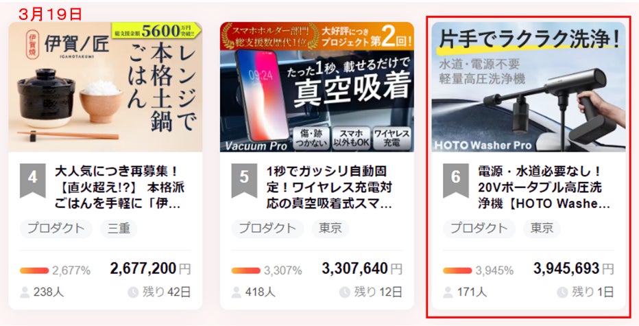 また、 本日 (3月19日) のCAMPFIREランキングプロダクト部門で6位に入賞することが出来ました ♪