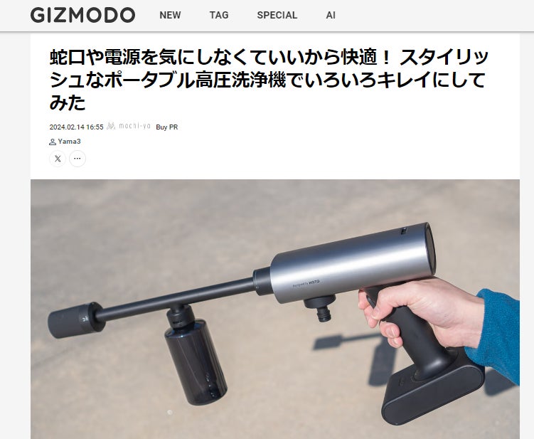 皆様、こんばんは!Brightチームです。お世話になっております。02月14日、GIZMODOで「HOTO WASHER PRO 」を紹介して頂きました!話題:蛇口や電源を気にしなくていいから快適! スタイリッシュなポータブル高圧洗浄機でいろいろキレイにしてみた是非下記のリンクからアクセスしてみてください。https://www.gizmodo.jp/2024/02/machi-ya-hotowasherpro-review-717126.html 【レビューの一部抜粋】〈片手でも使える操作性 こちらが今回試した「HOTO Washer Pro」の内容物。本体・自給用ホース、洗剤タンク付きのマルチノズル、バッテリーの他、充電用のアダプタとUSBケーブルも付属していました。 組み立てに難しい点はなく、ノズルやバッテリーは挿して回転すると固定される仕組み。ホースはジョイントがカチッとすればOK。重量は約1.5kgとのことで、片手でも十分に取り扱いできました。長時間使う場合などは両手で支えた方が疲れは少ないかと。バッテリー充電はUSB Type-CなのでPCやスマホ用のアダプタでも充電でき、 モバイルバッテリーとして使えるという便利なポイントも。さすがにこのバッテリーを持ち歩くことはないですが、しっかり充電しておけば災害などの緊急時にも役立ちますね。〉 ご興味のある方、ぜひ支援お願い致します。https://camp-fire.jp/projects/view/717126Brightチームは、当プロジェクトをもっと多くの方に知っていただきたいと考えております。よかったら、FacebookやTwitter等のSNSでのシェア・拡散をお願い致します。#brightdiyどうぞよろしくお願い致します。Brightチーム