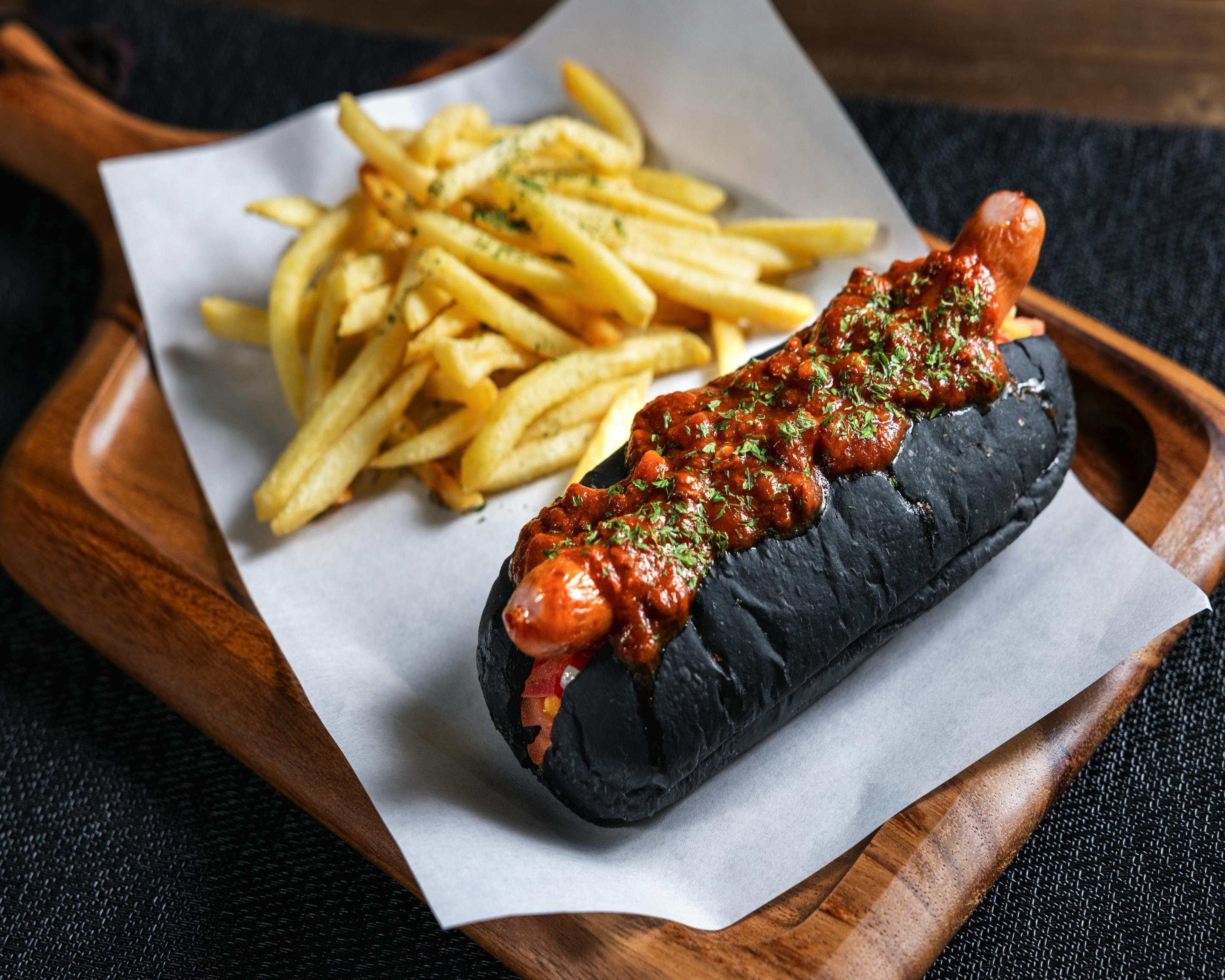 ドッグパンは竹炭パウダーが練り込まれた黒。これだけでも個性的です。