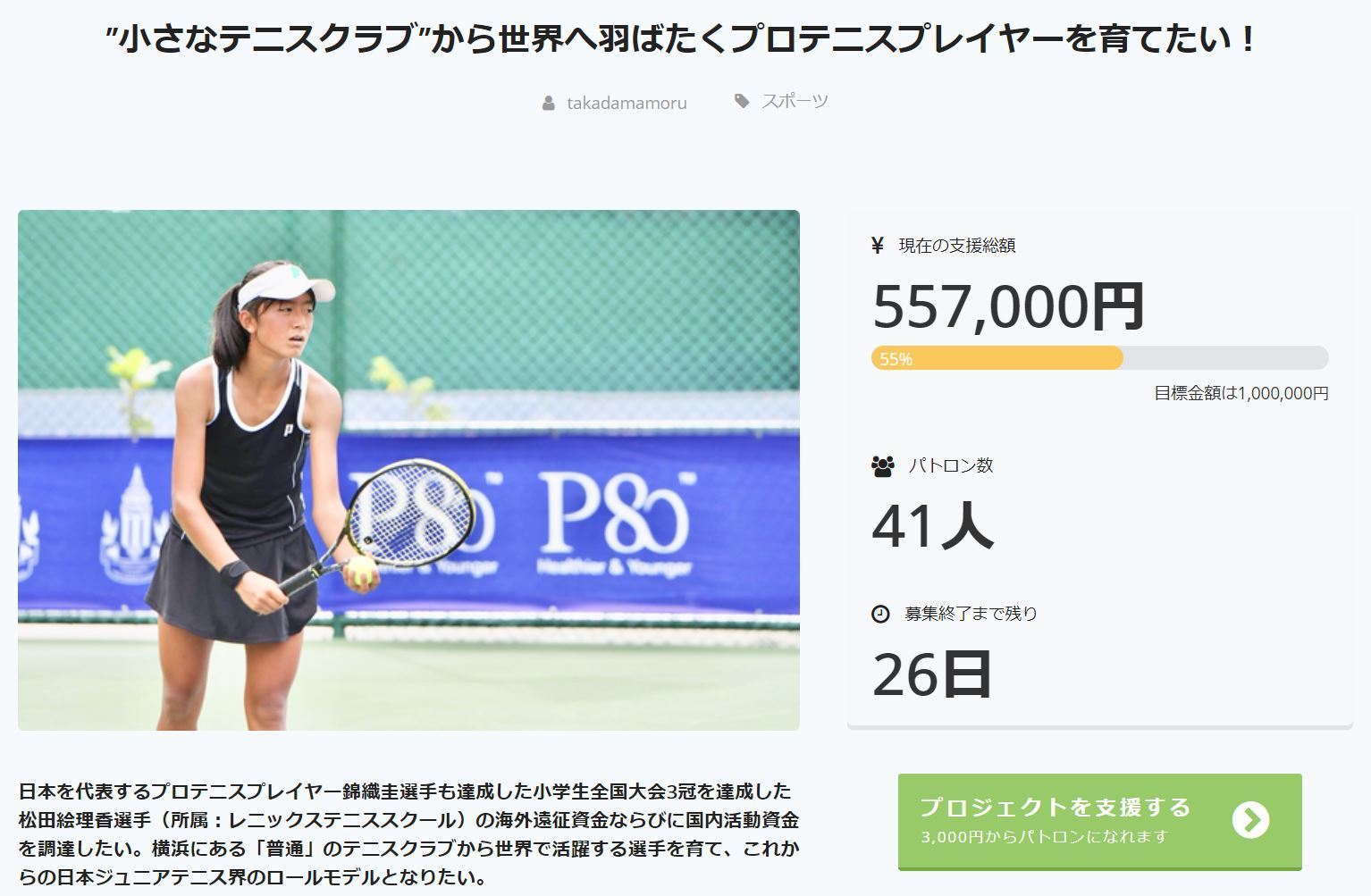 松田絵理香の未来に、そしてジュニアテニスの未来に、希望を与えるチャレンジです。