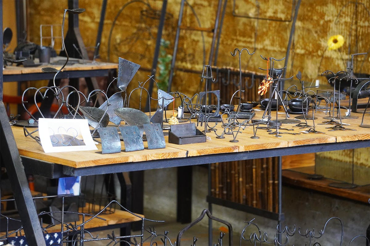 また、篠原メタル工房では大型の鉄鋼製品に加え、モニュメントや什器など様々な製品を制作・販売。敷地内にある展示場内では鉄のオブジェの展示と販売を行っており、実際に製品を見ながらお客様のご要望に応じてオーダーメイドで什器の制作しております。