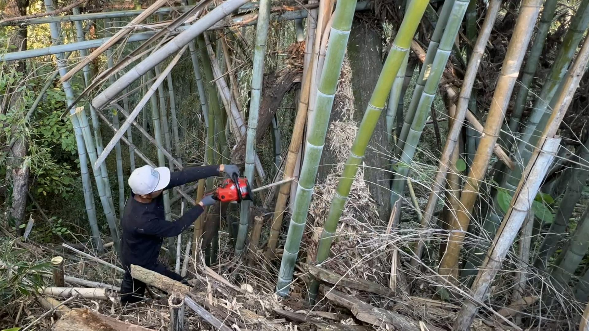 今はキャンプ場からの景観をよくするために、敷地内の竹や木を伐採しています。