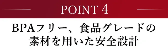 FDA(アメリカ食品医薬品局)の基準に準拠して設計しているため、アクリルはBPAフリー(※)、シリコンゴムも食品グレードのものを使用。