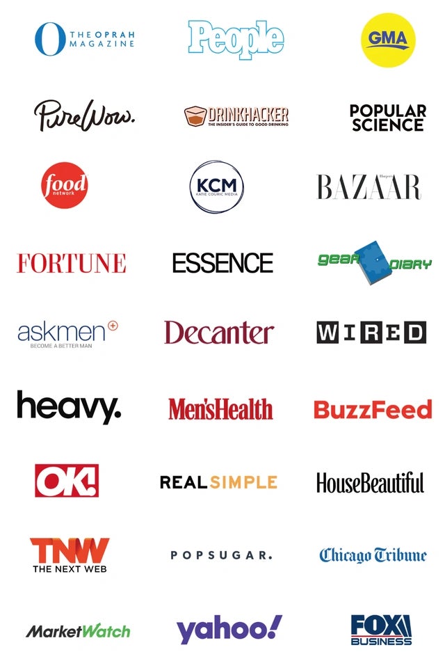 【Wine Purifier】が市場に出回ると、米国大手ケーブルニュースの“FOX Business”や歴史ある大手経済雑誌“Forbes”、“Peaple”、“Fortune”などの各種メディアでも取り上げられ、亜硫酸を手軽に取り除く発明を絶賛しました。