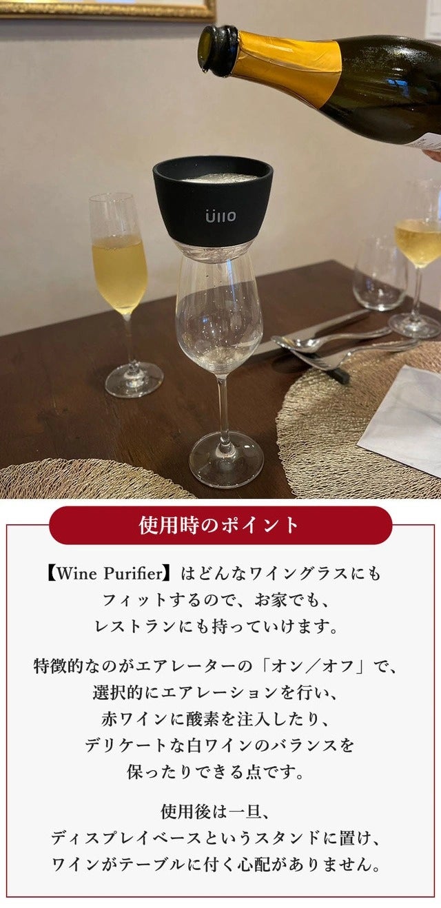 【Wine Purifier】はグラスに置いてワインを注ぐだけで、ワインの亜硫酸を取り除く画期的なアイテム。