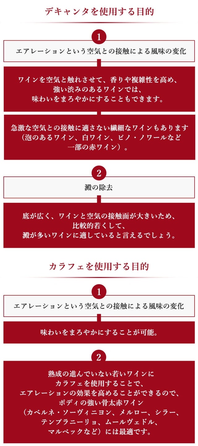 華やかでスタイリッシュなカラフェは、ワインの美しい色を楽しむこともでき、テーブル演出に最適です。