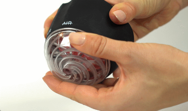 【Wine Purifier】はエアレーターを搭載し、亜硫酸を除去したワインがらせん状の溝を通る過程で空気に触れる時間が増え、ワインの苦味成分のタンニンの酸化を早めてまろやかにし、閉じていた香りを開きます。