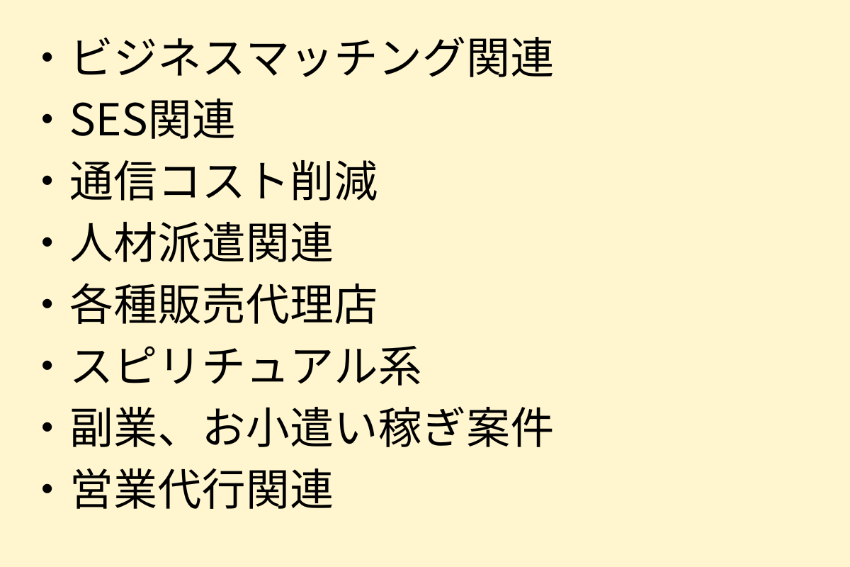 また、以下の業種の方は現在すでに登録が多いためお断りする場合がございます。