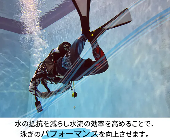 この構造により、筋肉のエネルギー消費を抑えながら、泳ぐパフォーマンスをさらに向上させることができます。