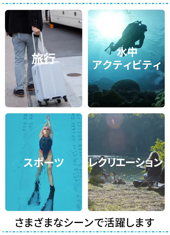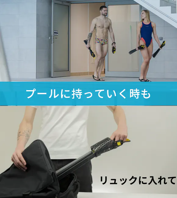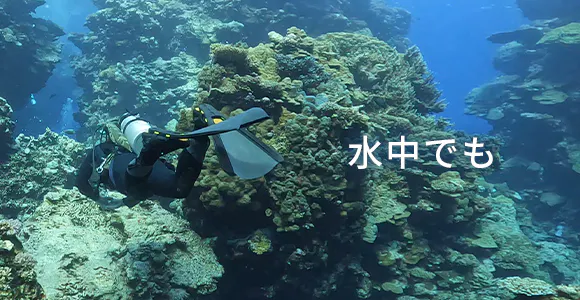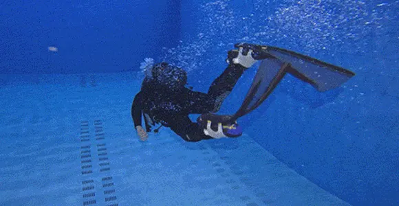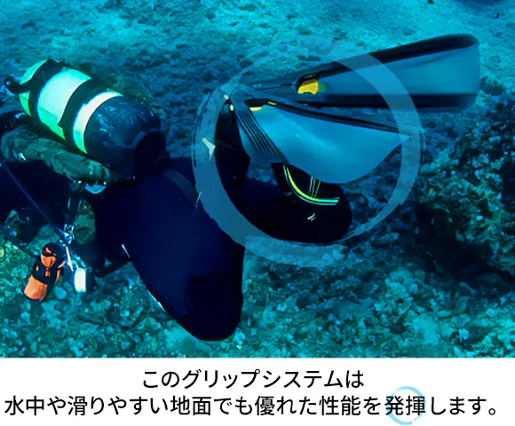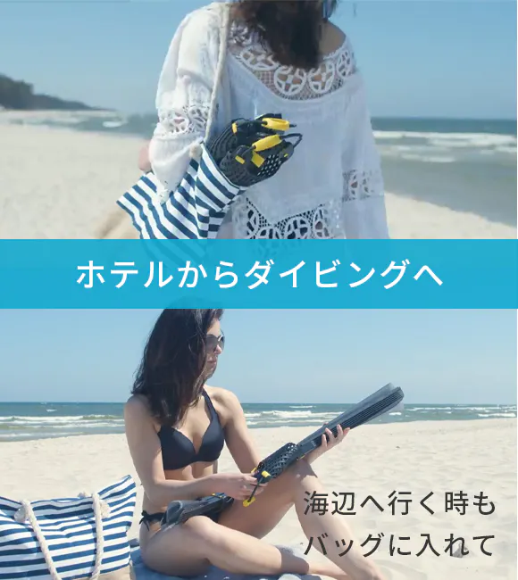 従来のフィンと比べて圧倒的なスピードで、すぐに水の中に潜ることができます。