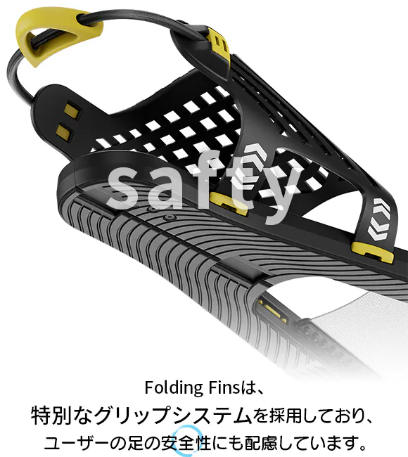 A. マリンシューズ等を履いてから、Folding Finsを装着してください。